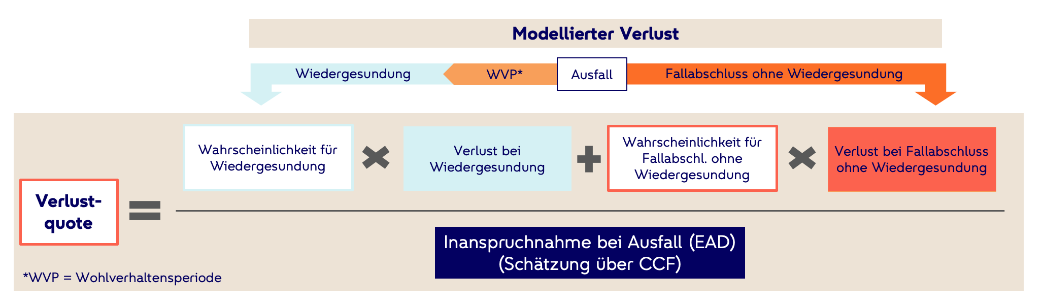 Das Verfahren der Verlustschätzung hat eine enge Verknüpfung mit dem Risikomodell. Die modellierten Verluste fließen unter Berücksichtigung der Ausfallwahrscheinlichkeiten direkt in die Risikoprämienberechnung und damit in das barwertige Kreditportfoliomodell im Kundengeschäft ein.