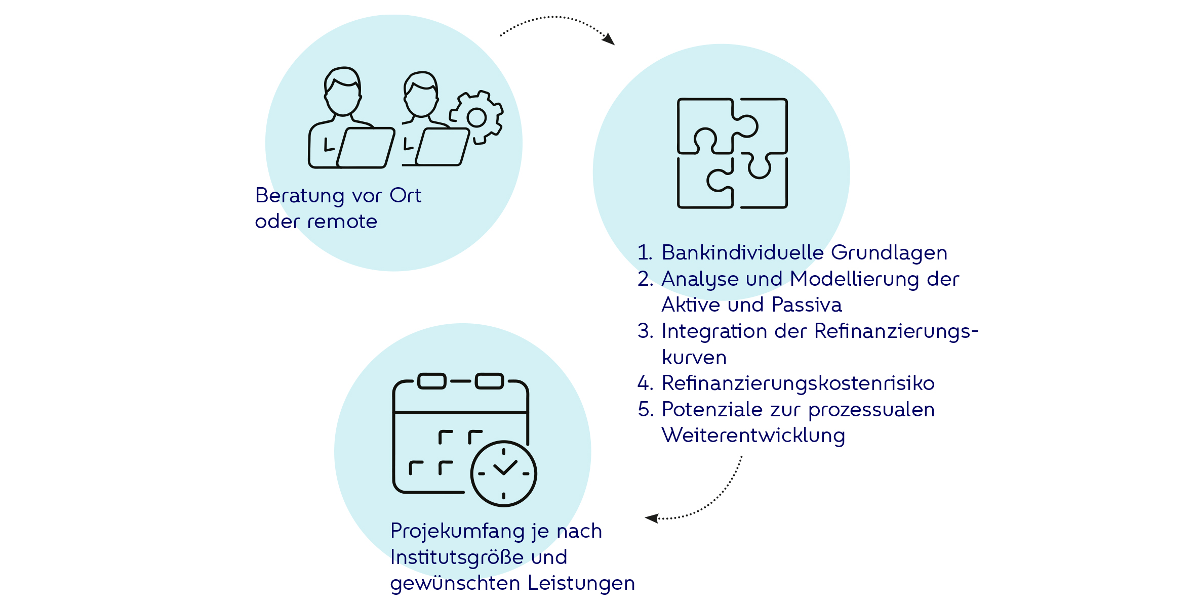 Daraus ermitteln wir das Refinanzierungskostenrisiko und überprüfen die methodische Konsistenz von Risikomessung und -steuerung. Zusätzlich zeigen wir Potenziale zur prozessualen Weiterentwicklung auf und begleiten organisatorische Anpassungen.