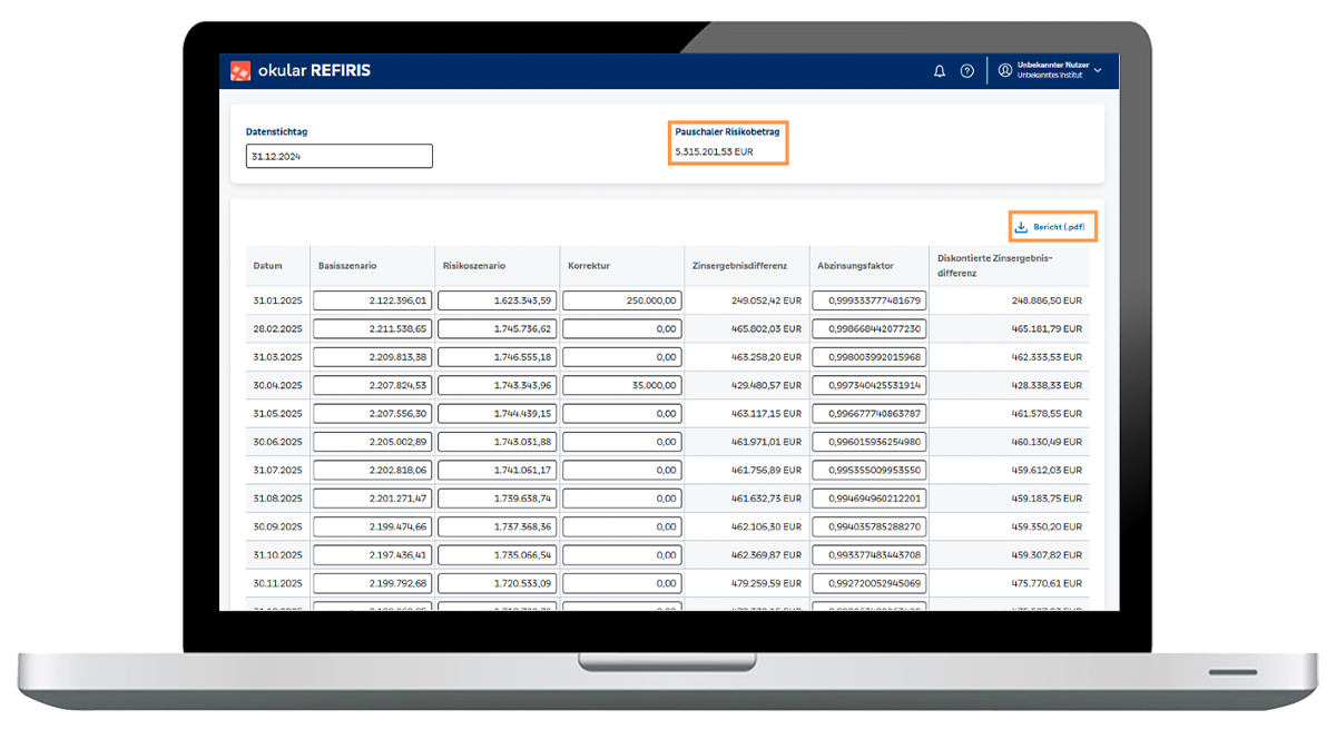 Das okular-Tool REFIRIS (REFInanzierungskostenRISiko) unterstützt Institute bei der Berechnung des Refinanzierungskostenrisikos innerhalb der preisorientierten Liquiditätsrisikosteuerung.