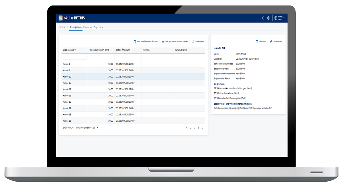 Dem okular-Tool BETRIS unterliegt das Verfahren zur Messung von Beteiligungsrisiken.
