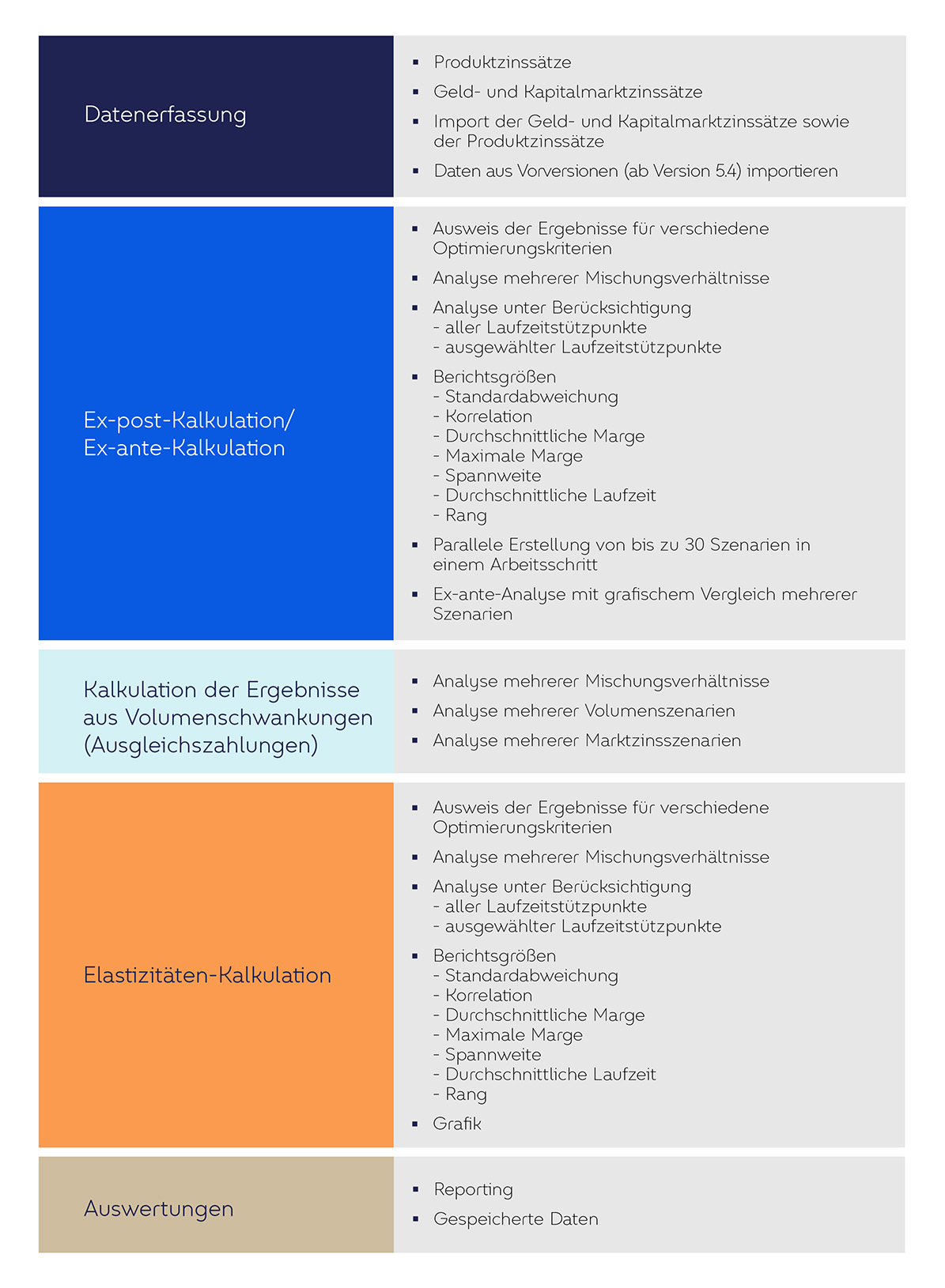 PRO-VARI liefert Zinsbindungsfiktionen für die Bewertung von variablen Produkten in der Kundengeschäftssteuerung und für die Bestimmung vertriebskonformer Dispositionsvorschriften bei der Zinsbuchsteuerung.