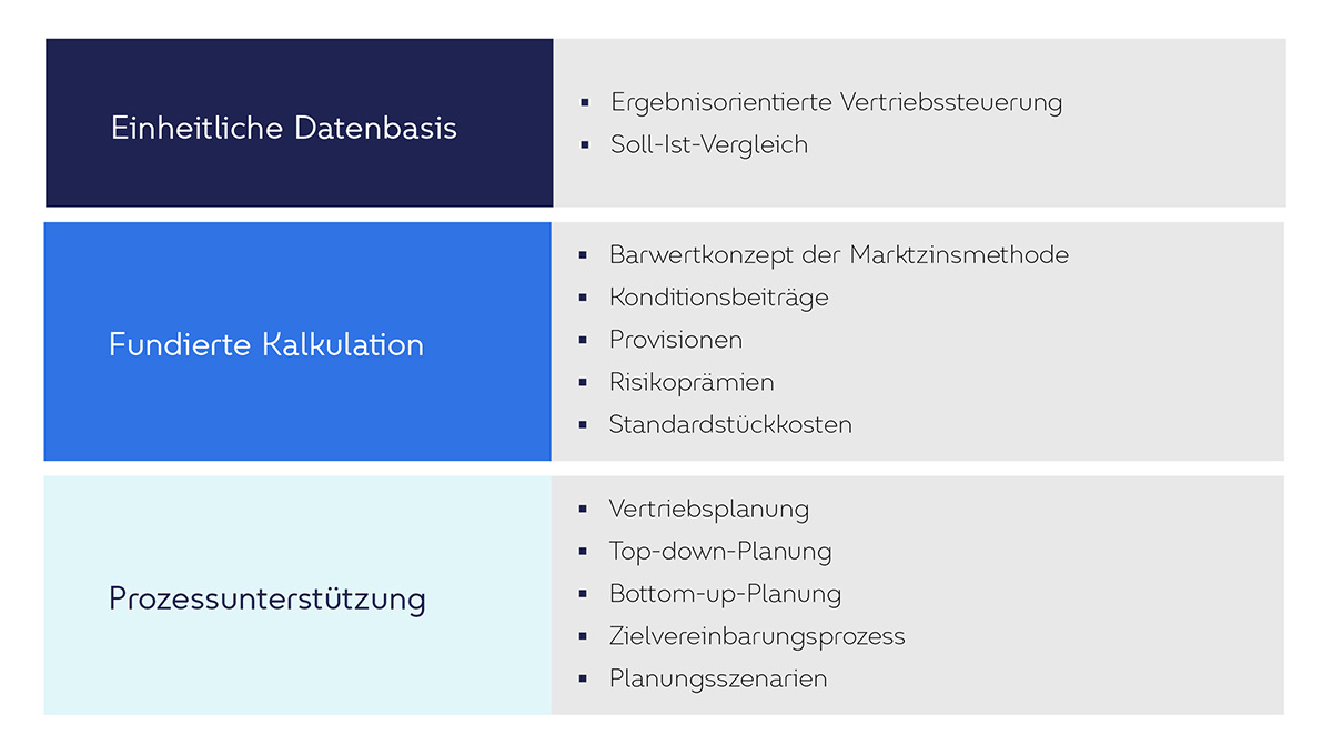 Die Planung der barwertigen Deckungsbeiträge mit okular DB III-PLANER basiert auf dem Barwertkonzept der Marktzinsmethode. okular DB III-PLANER liefert damit konsistente Ergebnisse als Grundlage für aussagefähige monatliche Soll-Ist-Vergleiche.