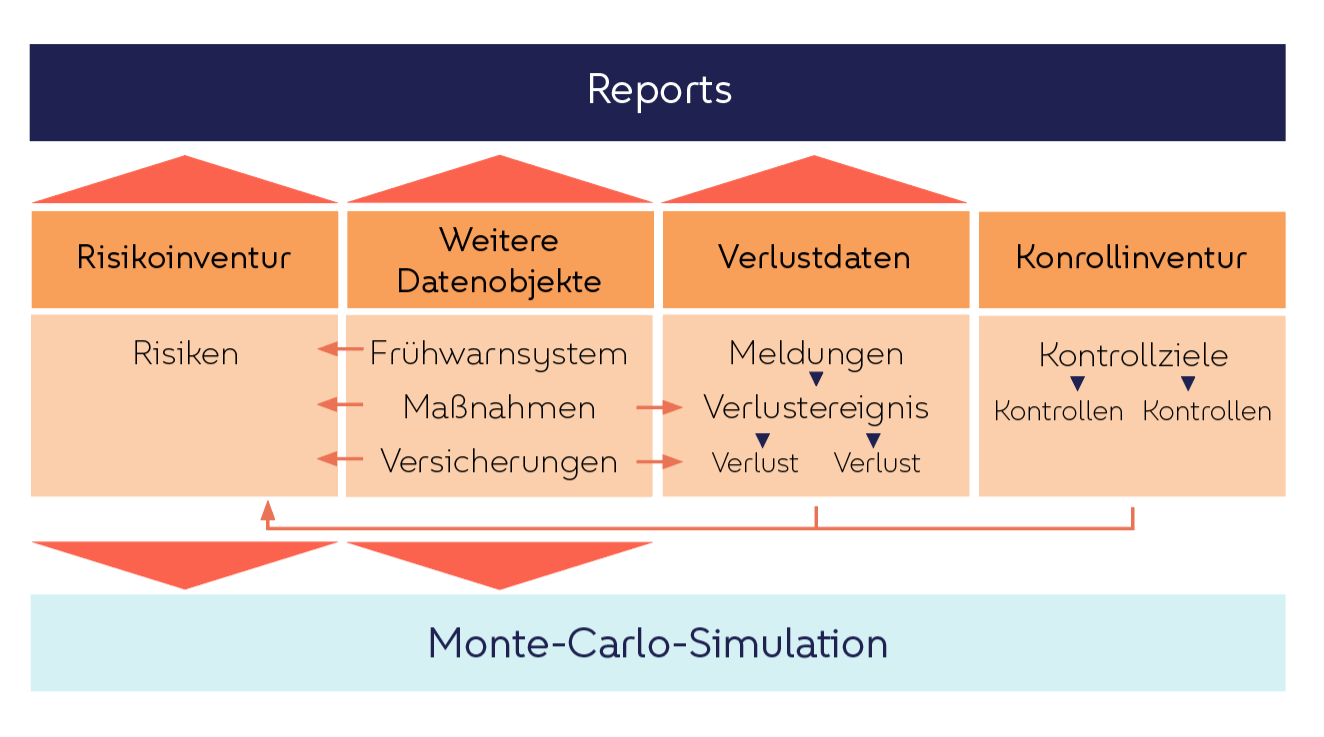 - Abdeckung des gesamten operationellen Risikomanagementprozesses inkl. der Überleitung von Ergebnissen in die Risikotragfähigkeit in SIMON