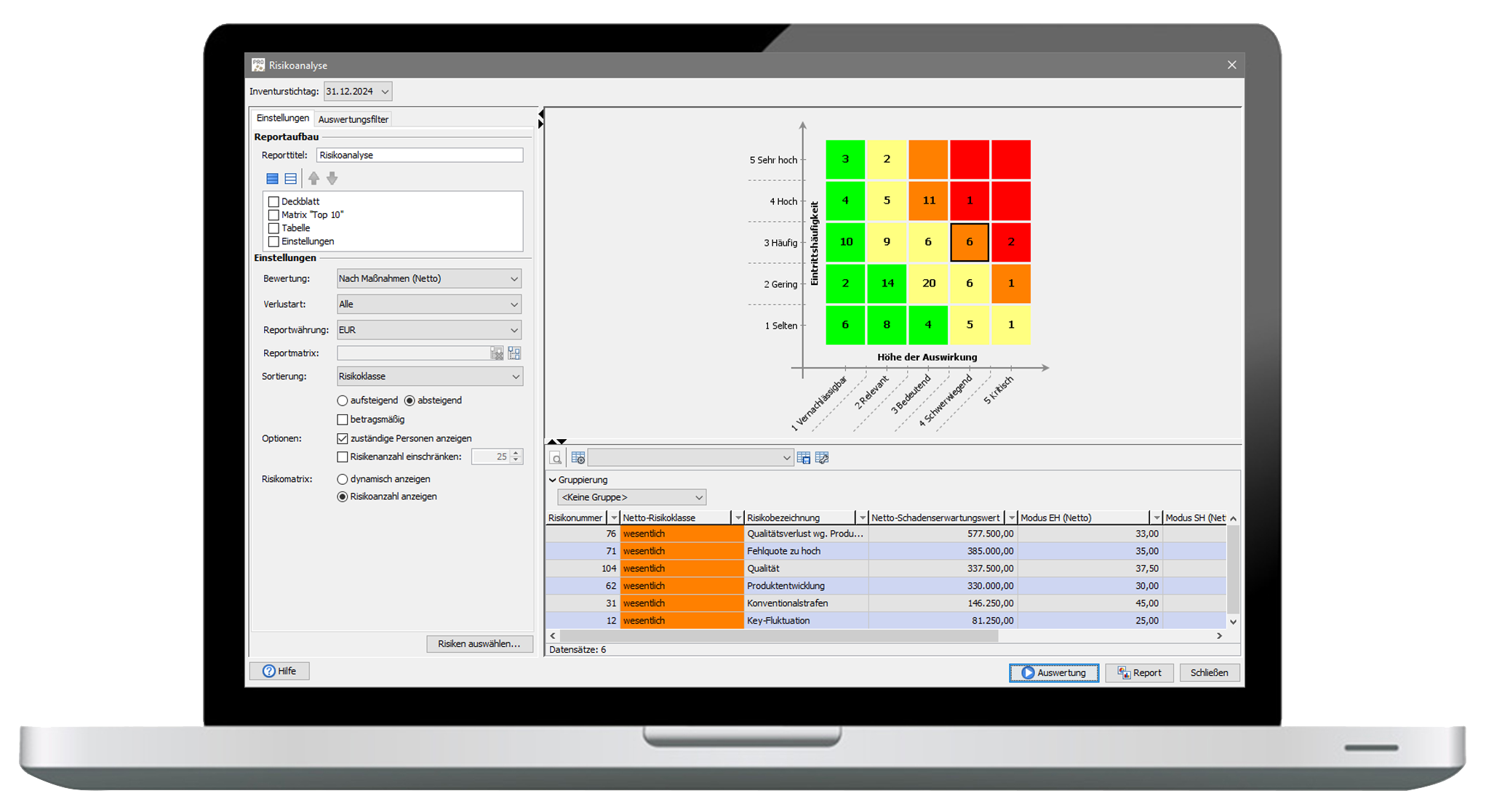 Sie können Ihre Risiken einfach erfassen, bewerten, analysieren und in Ihr Reporting mittels Standardberichten oder Exporten überführen.